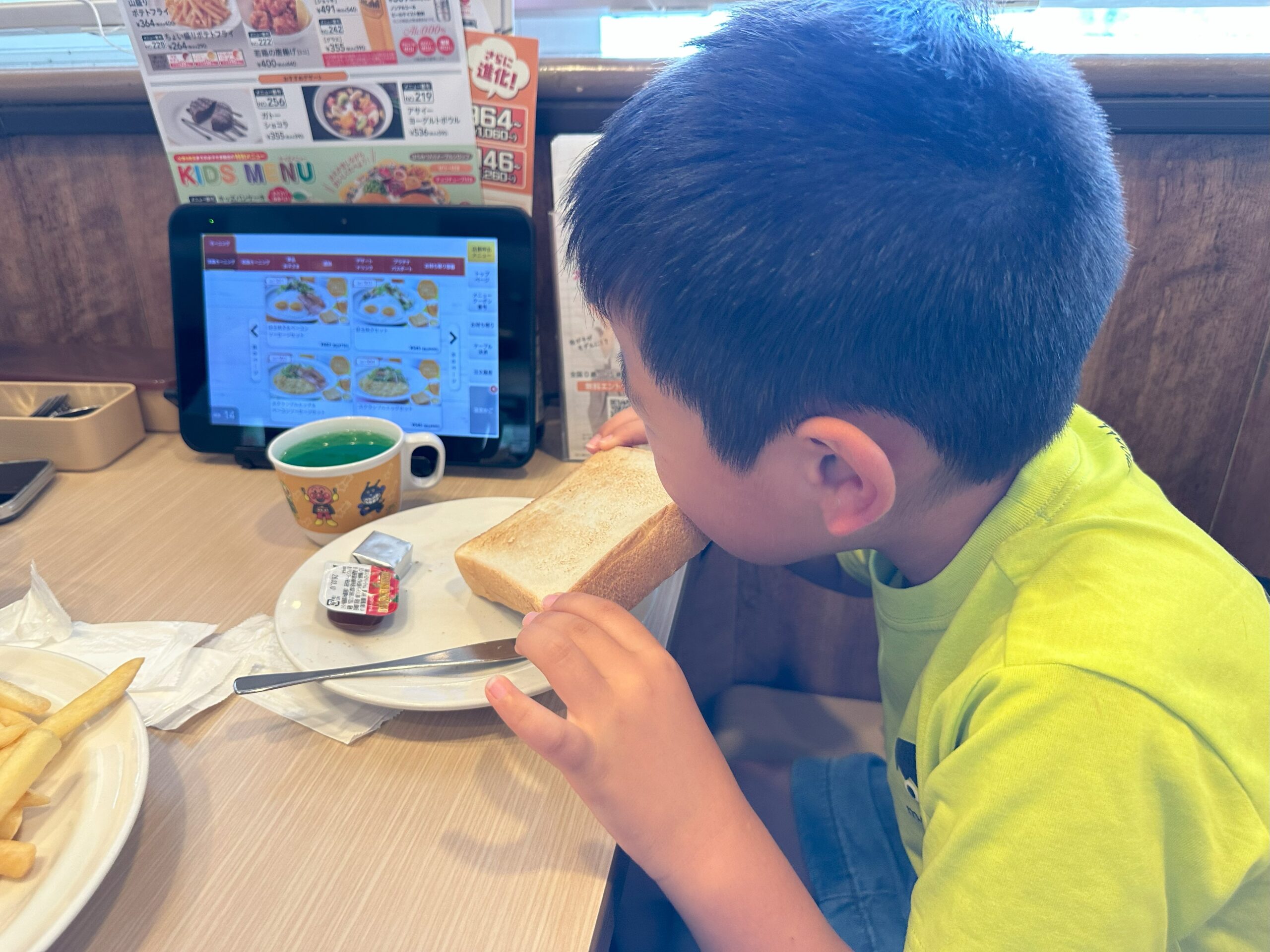 ゆったりとした席を案内してくれたので子どももくつろげて、定食もボリュームたっぷりで大満足。