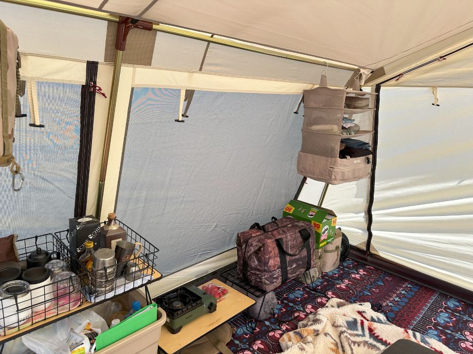寝起き、ちょい腰痛いけど、荷物も片付けもラクすぎて感動!