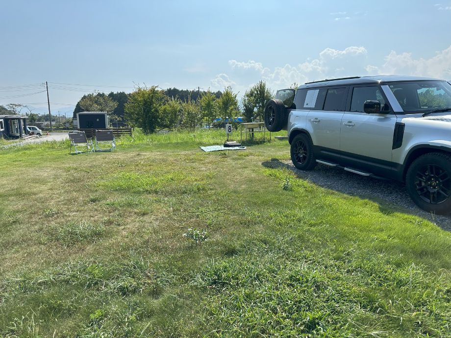 サイトは車を停めてもゆとりがある10m×10mの広さで快適。