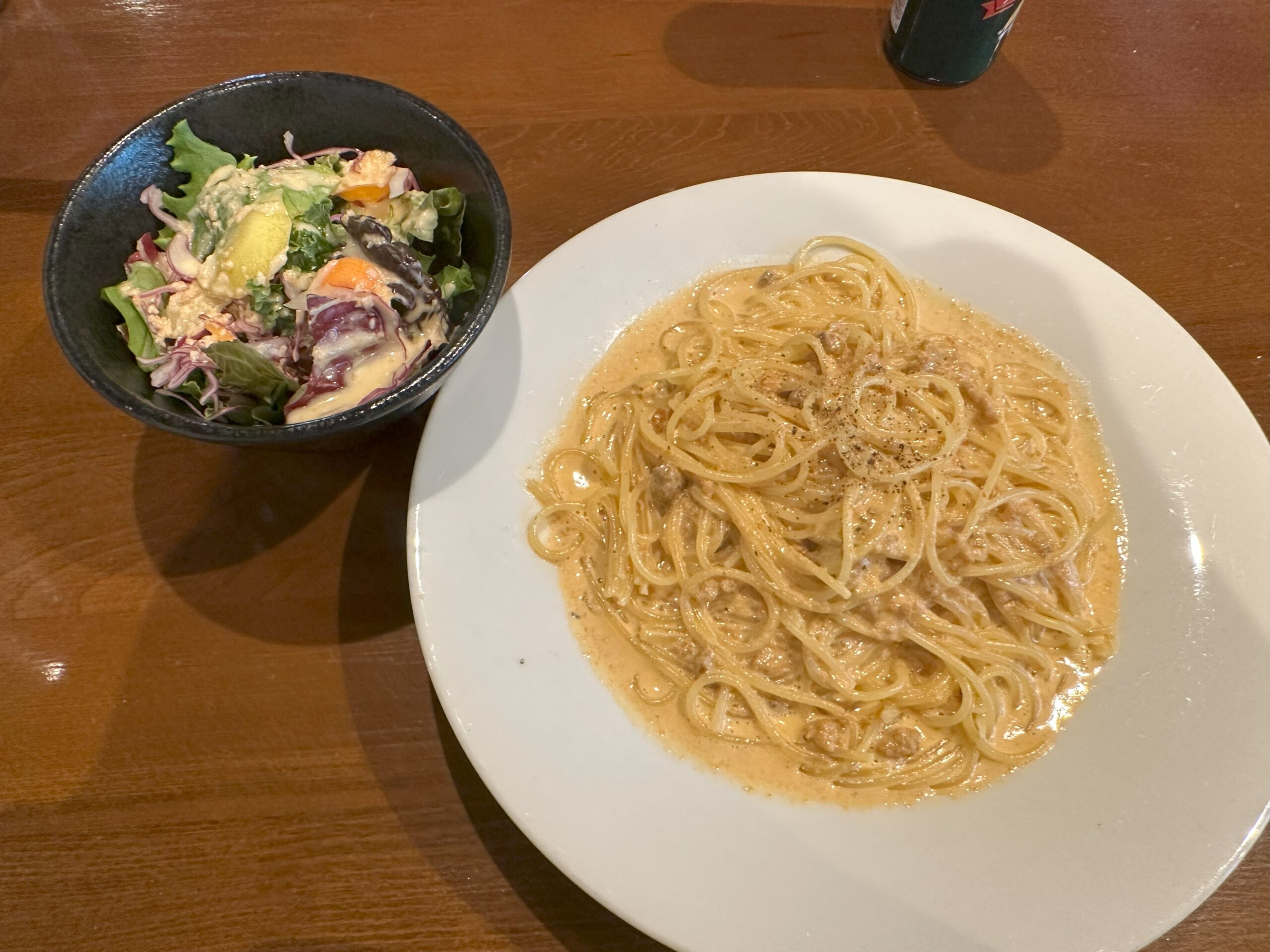 今回オーダーしたのは、どちらも ランチセット(サラダ&ドリンク付き)。