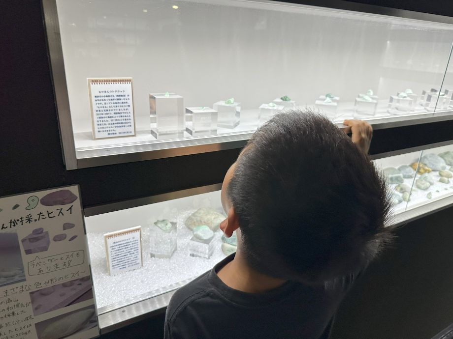 展示の前でじっくり説明を読んだり、石の形や色を観察したりと夢中になっていました。