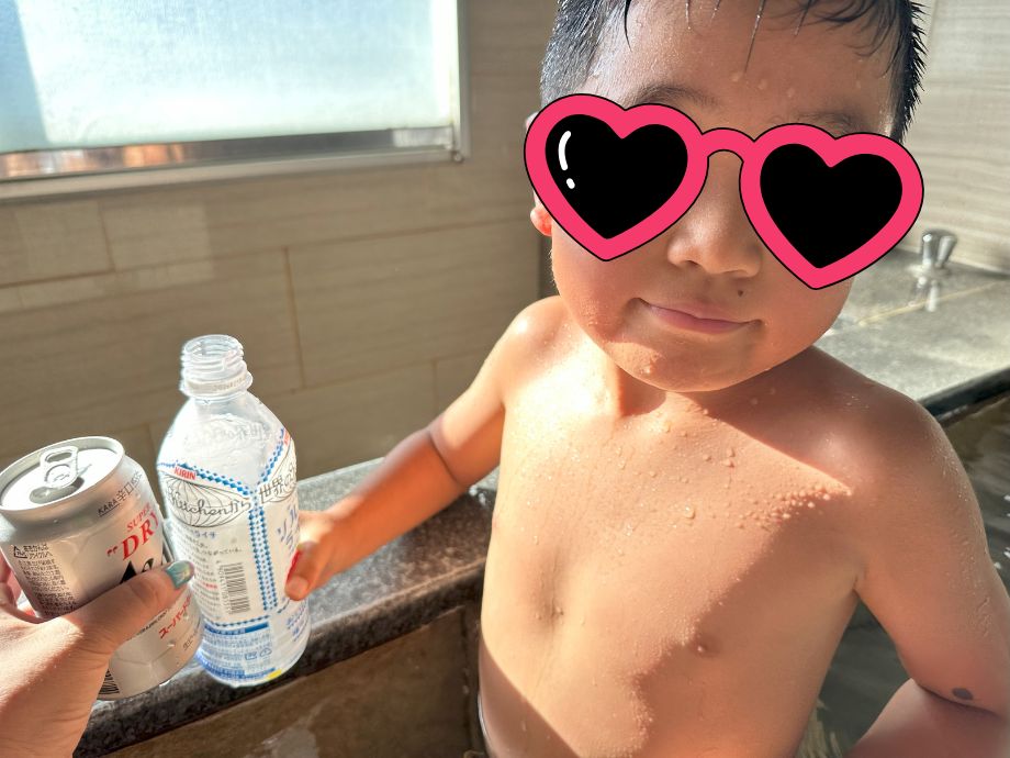 ビールとジュースを持ち込んで、湯船でふたり仲良く「グビッ」と乾杯🍺🥤