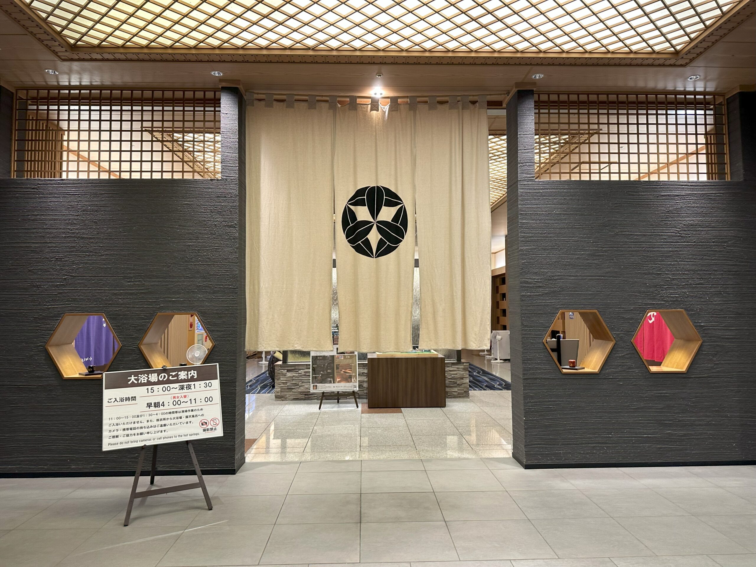 男女が入れ替わるので、宿泊すれば両方の大浴場を楽しめます。