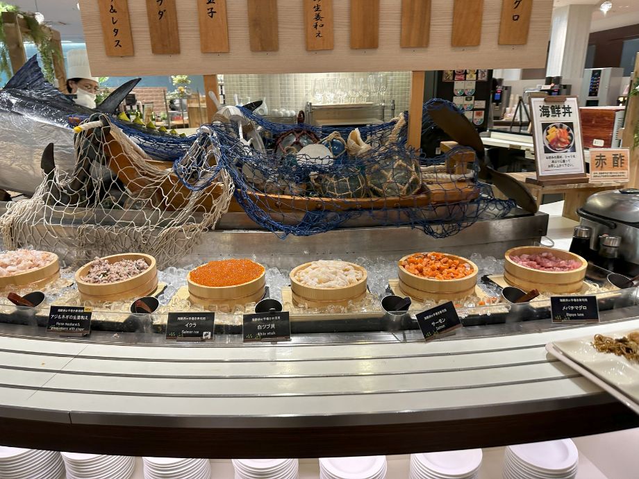 海鮮丼コーナーは、自分で好きな具材を盛り付けられるスタイル。