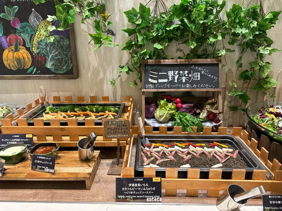 地元野菜を使ったサラダは、なんと「食べられる土」の上に野菜を立てて盛り付ける