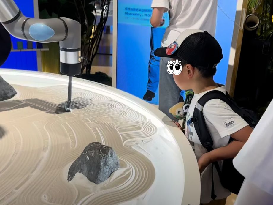 ロボット:砂の上に模様を描いていくロボットに釘付けで、しばらくじーっと