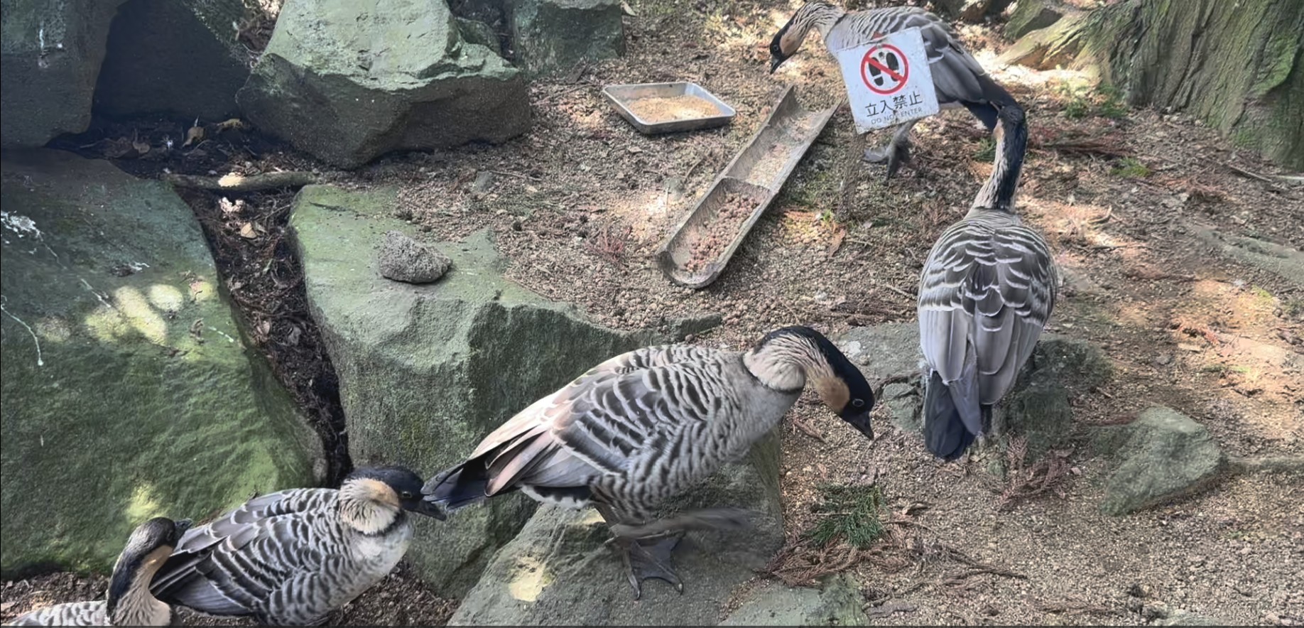 ちょうどごはんタイムだったようで、整列して餌場へ向かう様子は微笑ましくて