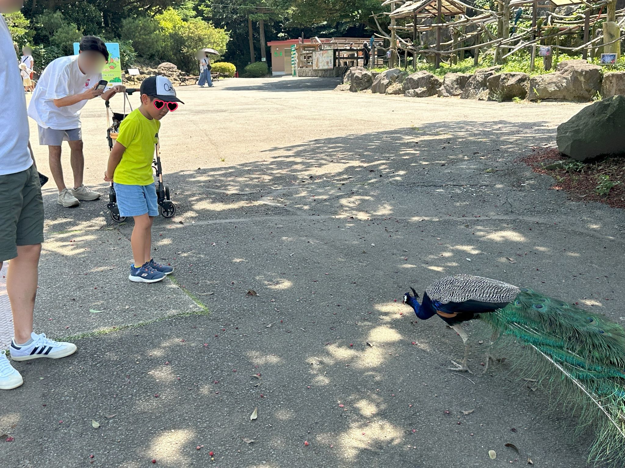 園内を歩いていると、ふつうにクジャクが目の前を歩いてる😳!