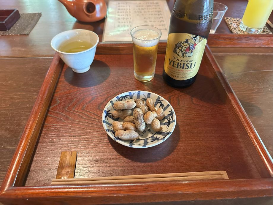ビールのお通しで出てきた茹でピーナッツが絶妙な塩加減で最高。