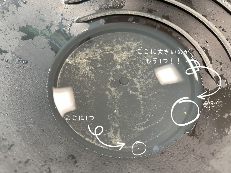 2回戦目、1つも採れてなかったテンション低めのマメ太に、パンニング皿を一緒に持ち